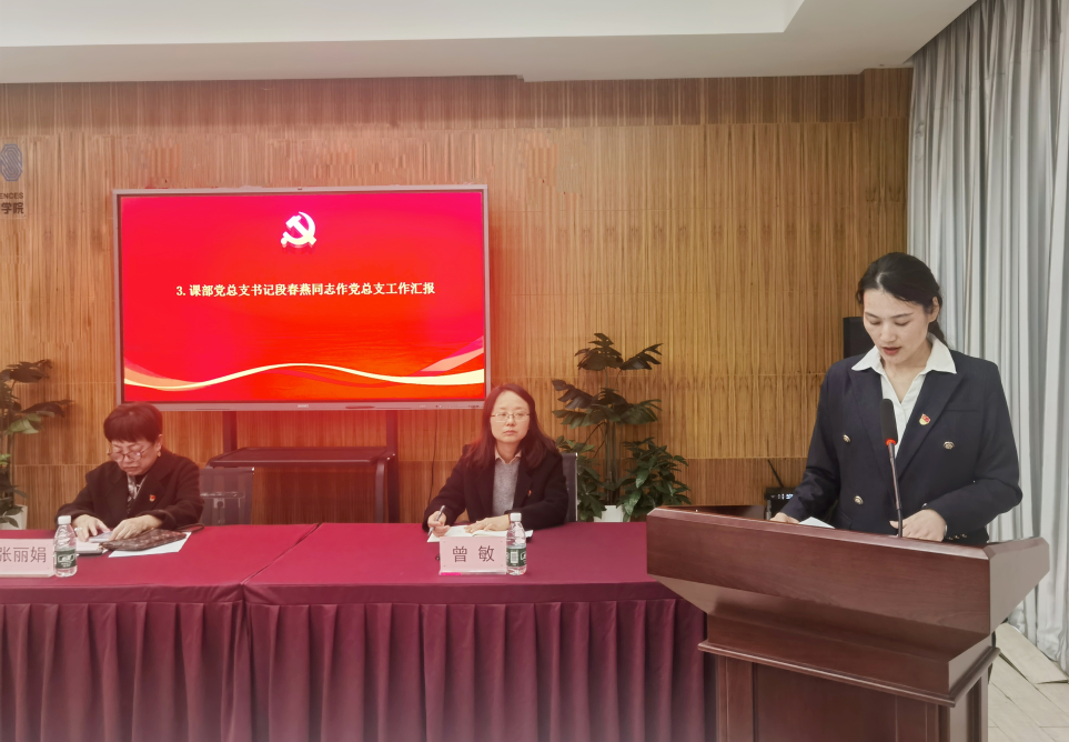 上一届党总支书记段春燕同志代表总支部委员会作工作报告。报告全面回顾了过去五年党总支在思想政治建设、组织建设、党风廉政建设、师德师风建设、服务教学科研等方面取得的工作成效,客观分析了当前党建工作存在的不足,并对未来五年党总支重点工作进行展望,明确提出要以强化政治引领为核心,以提升组织力为重点,以推动事业发展为目标,持续深化党建与教学科研深度融合,为公共基础课部高质量发展提供坚强政治保障和组织保障。