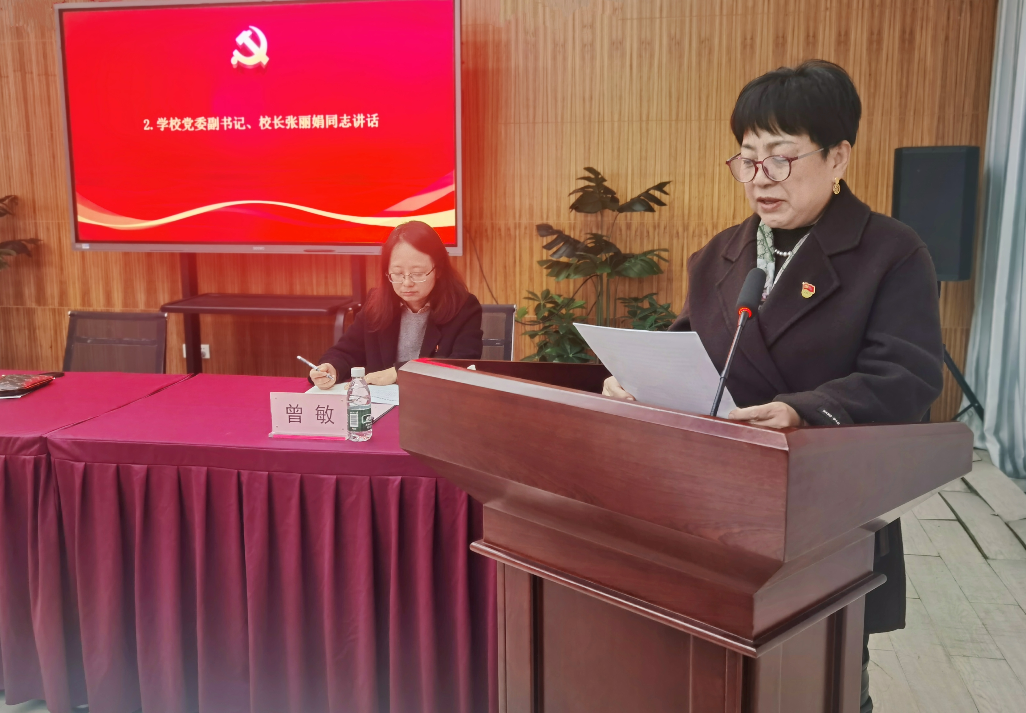 会议在庄严的《中华人民共和国国歌》声中拉开帷幕。会上,学校党委副书记、副校长张丽娟代表学校党委对大会顺利召开表示祝贺,向全体与会党员及课部教职员工致以问候。她肯定课部过去五年在党建引领、品牌创建、教育教学等方面的显著成效,强调大会在关键阶段召开的重要意义。她代表学校党委提出四点期望,要求课部聚焦政治建设、立德树人、党建与中心工作融合、作风建设,凝心聚力、开拓进取,为学校高质量发展再立新功,预祝大会圆满成功。